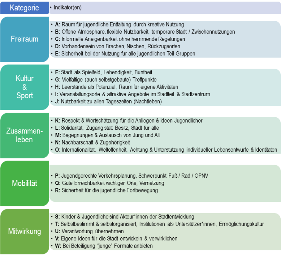 Name: Kategorien und Indikatoren des Stadt-Checkers