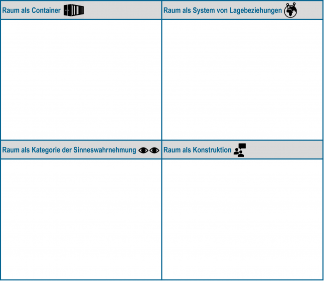 Abbildung 1: Die Raumkonzepte, eigene Darstellung nach Wardenga (2002)
