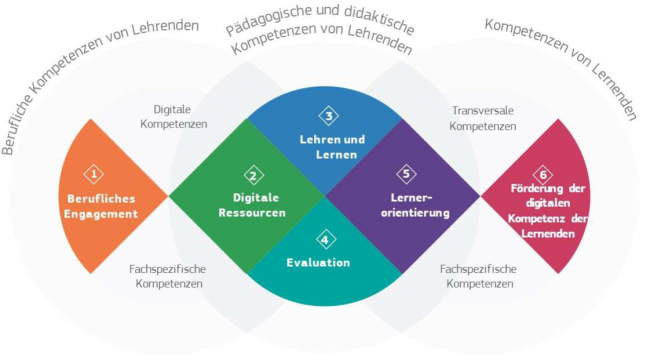 Als allgemeiner Bezugsrahmen gliedert sich der DigCompEdu in die sechs Kompetenzbereiche: