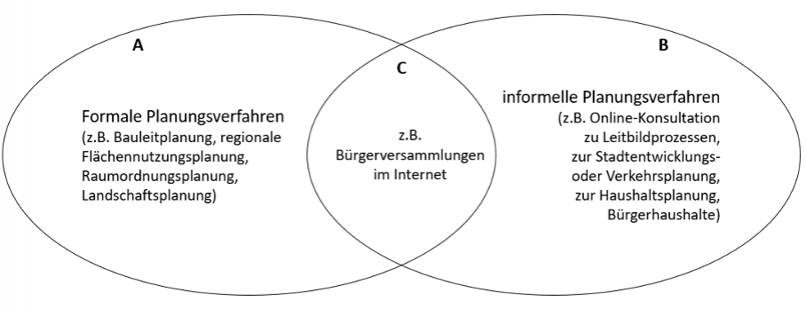 Die Stadt- und Raumplanung bietet zwei zentrale Ansätze zur Bürger*innenbeteiligung. Bei den formalen Verfahren ist vorab festgelegt, wann sich Bürger*innen zu Planungsvorhaben äußern können, da die Bürger*innenpartizipation fest in den Planungsprozess integriert ist. Dies findet sowohl auf kommunaler-, regionaler-, als auch auf Landesebene mittlerweile häufig Anwendung. Bürger*innen können sich umfassend über Planungen informieren und Bedenken und eigene Vorschläge über Formulare, die meist auch online auszufüllen sind, einreichen. Allerdings ist die Beteiligung bei formalen Verfahren nicht besonders groß, was nicht zuletzt damit zusammenhängt, dass diese Partizipationsmöglichkeiten erst relativ spät im Planungsprozess stattfinden und die Chancen die Planung zu beeinflussen somit entsprechend gering sind (Märker & Wehner, 2008).