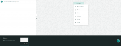 Neue Folien können über den +-Button rechts unten hinzugefügt werden. Über das Drop-Down-Menü kann die angezeigte Folie gelöscht werden, das Layout des Sidecars verändert oder das ganze Sidecar dupliziert oder gelöscht werden.